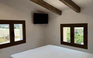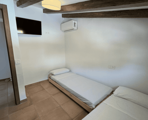 Nuestra suite familiar ofrece un espacio amplio y acogedor, ideal para disfrutar en familia. Con vistas a la naturaleza y todas las comodidades para una estancia perfecta.